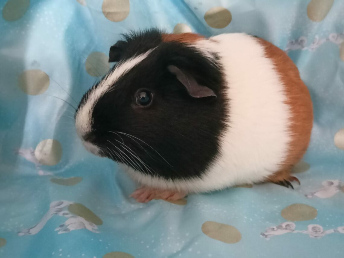 Arrivé le : 07/02/2025, en famille d’accueil dans le 26 Origine : Inconnue Pourquoi est-il arrivé chez nous ? Sa propriétaire ne pouvait plus s’en occuper Sexe : Mâle entier (sera très probablement castré) Date de naissance : 01/08/2025 Couleur et variété : Cobaye commun poils lisses, tricolore Problèmes médicaux : Poids : 690g, le loulou est en bonne santé Comportement : Muffin est un petit chon qui fera fondre les coeurs.Un peu timide au départ, il est calme et apprécie particulièrement les câlins. Très gourmand, il sait se montrer impatient et « pouik » beaucoup pour se faire comprendre et faire accélérer la cadence à l’heure du repas. Alimentation : Foin…