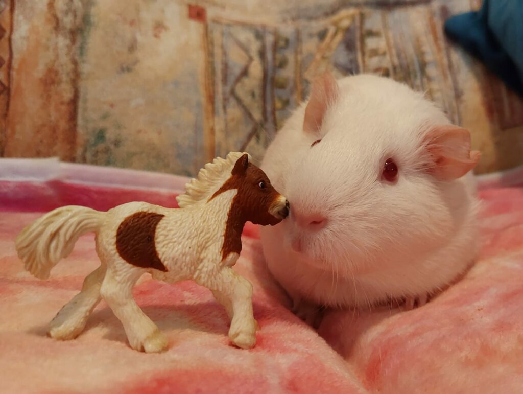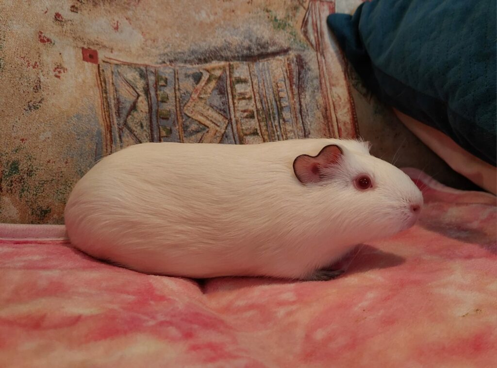 Couleur et variété : Cobaye commun poils lisses, albinos, souche Dunkin-Harthley