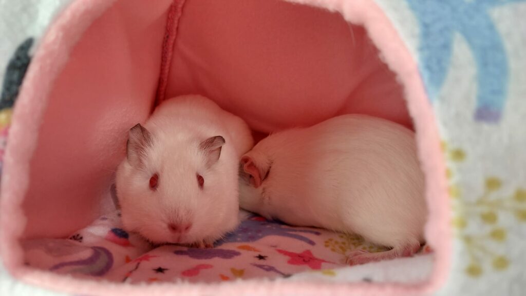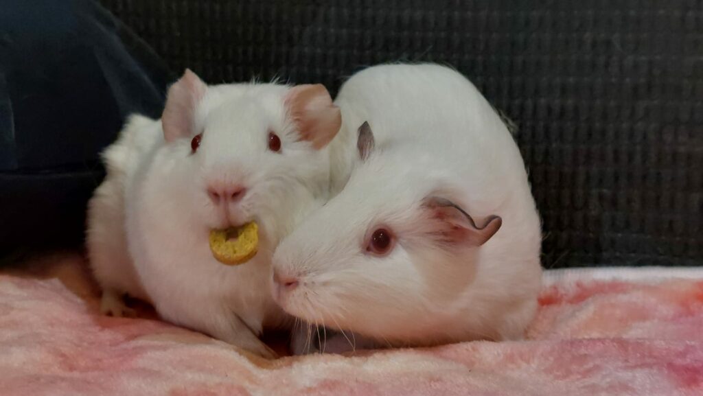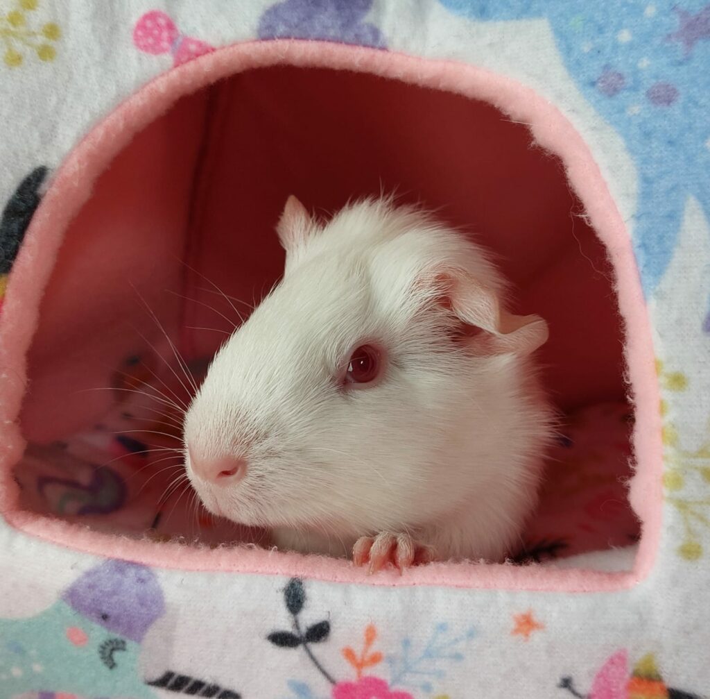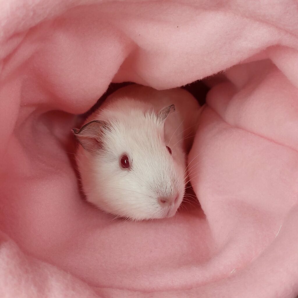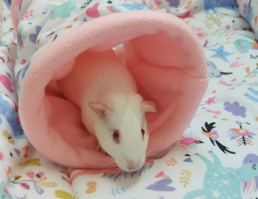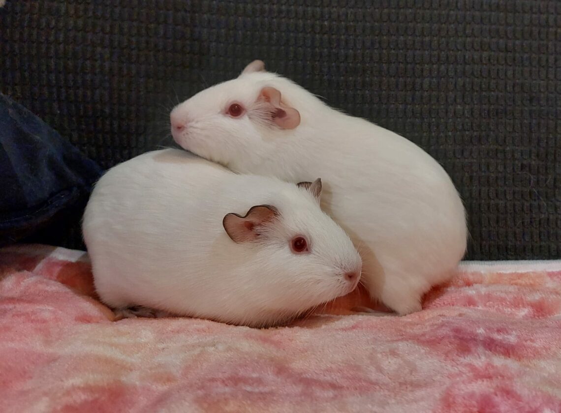 Couleur et variété : Cobaye commun poils lisses, albinos, souche Dunkin-Harthley
