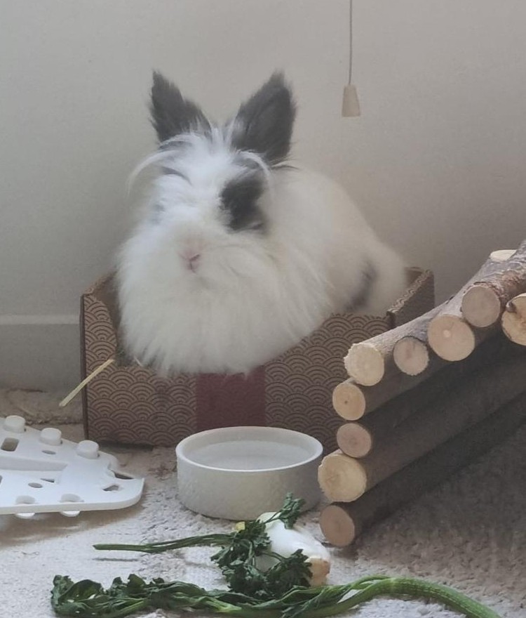 Pixie est une petite lapine calme qui se montre curieuse au monde qui l’entoure. Elle est très gourmande et adore enfouir son adorable minois dans le foin !
